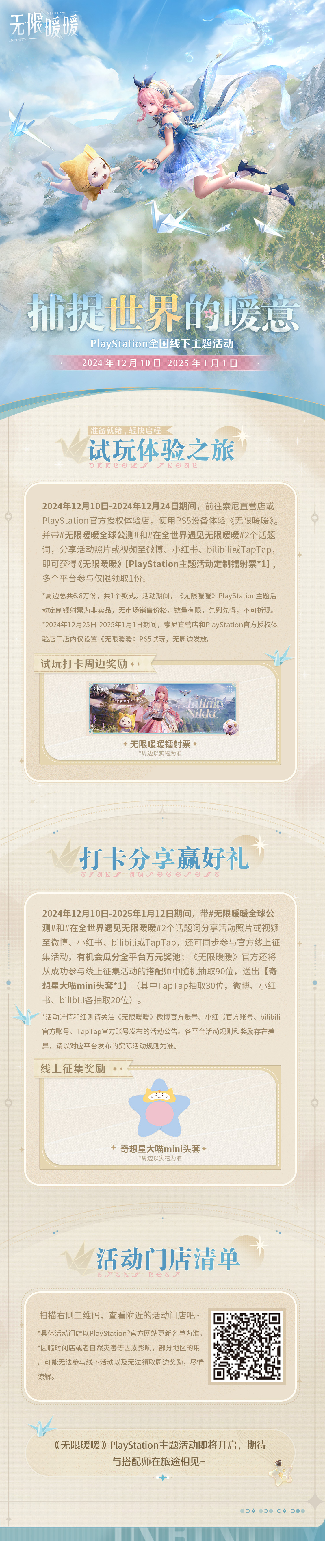 ➤2024年12月25日-2025年1月1日期间,索尼直营店和PlayStation官方授权体验店门店内仅设置《无限暖暖》PS5试玩,无周边发放